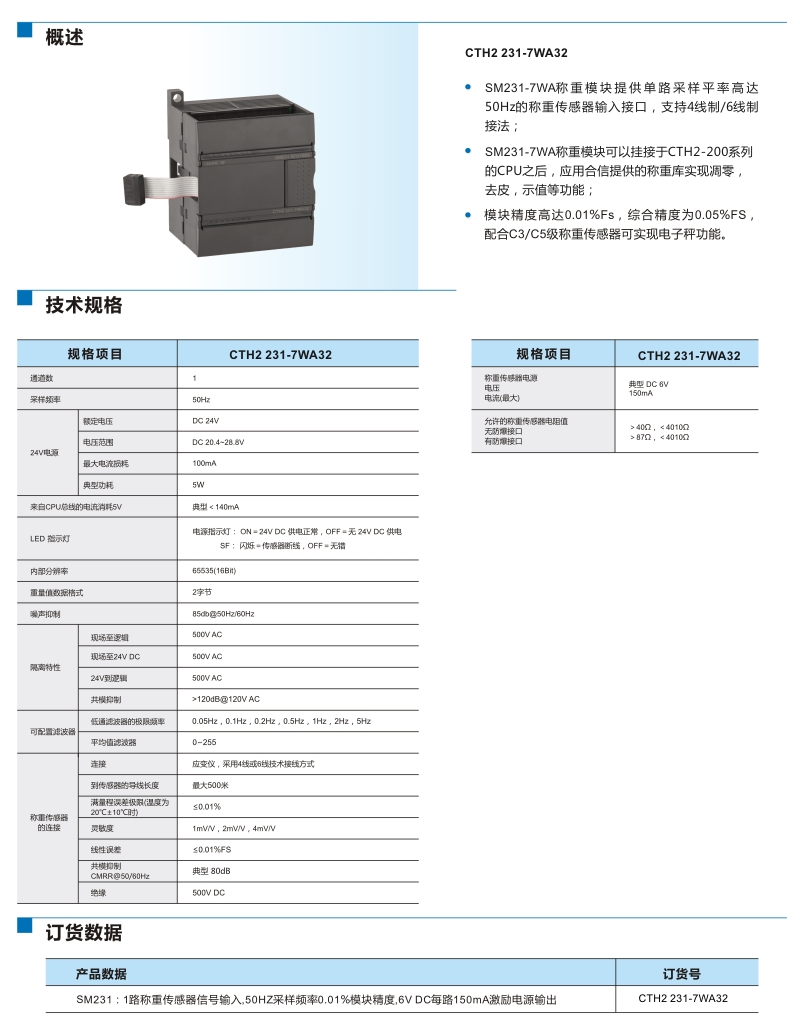 SM231 重模塊 | 稱重模塊,1路傳感器信輸入,采樣頻率50Hz,0.01%模塊精度,6VDC每路150MA激勵電源輸出,隔離型16位精度 | CTH2 231-7WA32 |