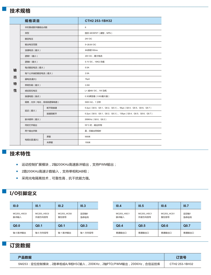 SM253 定位控制模塊 | 定位控制模塊,2路單相或AB相HSC輸入,200KHz,2軸PTO/PWM輸出,200KHz,合信運(yùn)動(dòng)控制庫(kù) | CTH2 253-1BH32 |