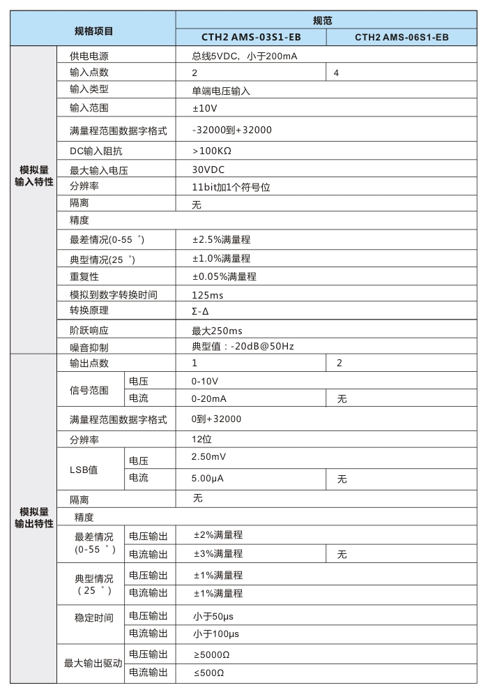 | EBH-AMS:2點*12位精度電壓輸入,1點*12位精度電壓/電流輸出 | CTH2 AMS-03S1-EB |