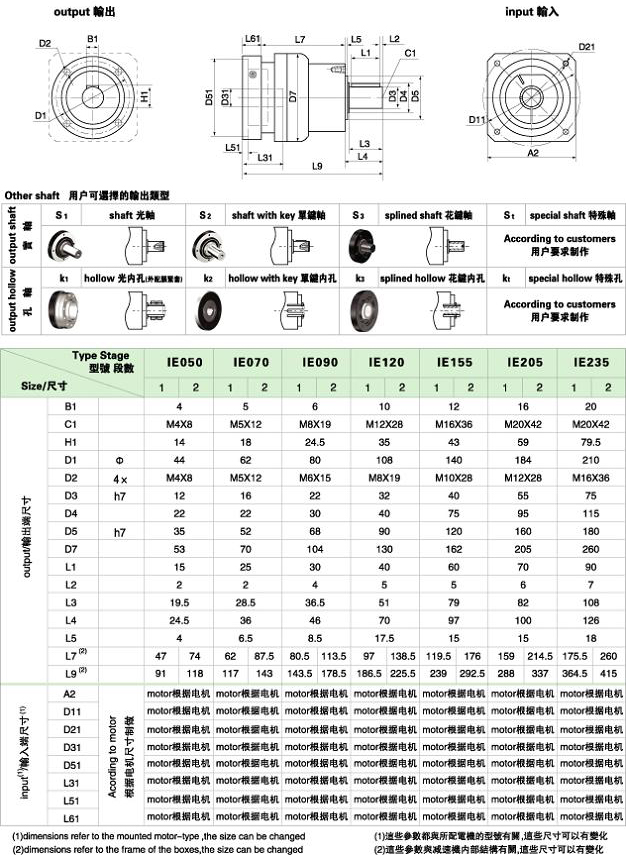 IB 系列精密行星減速機(jī)技術(shù)參數(shù)